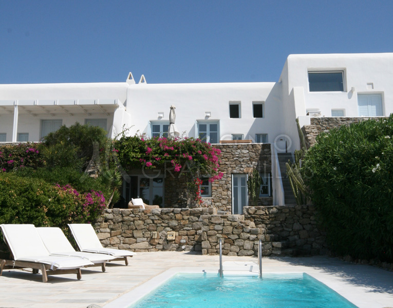 A small pool in the lower garden is perfect for a refreshing morning dive or a dip following a late afternoon siesta, while a couple of sandy beaches, small yet peaceful make this Mykonos Villa ideal for a group of guests consisted of a family with friends who wish to share a unique vacation experiences in an elegant fashion.