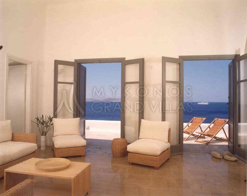 Located in the posh vacationing area of Agios Ioannis, this Mykonos Grand Villa is situated on a gated estate consisting of four (4) adjacent yet private villas. Situated on a hillside and with a close proximity to the sea, Villa Thalia offers a stunning view of the Aegean Sea, the nearby archeological Islands of Delos and Rhenia and the islands of Syros and Tinos at a distance. With a western orientation this rental villa in Mykonos offers a majestic sun set as the sun god "Helios", riding his golden chariot takes his evening plunge in to sea.