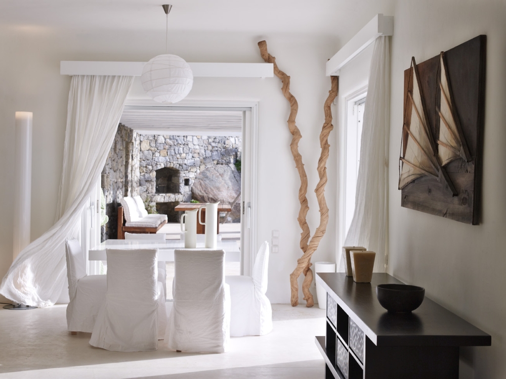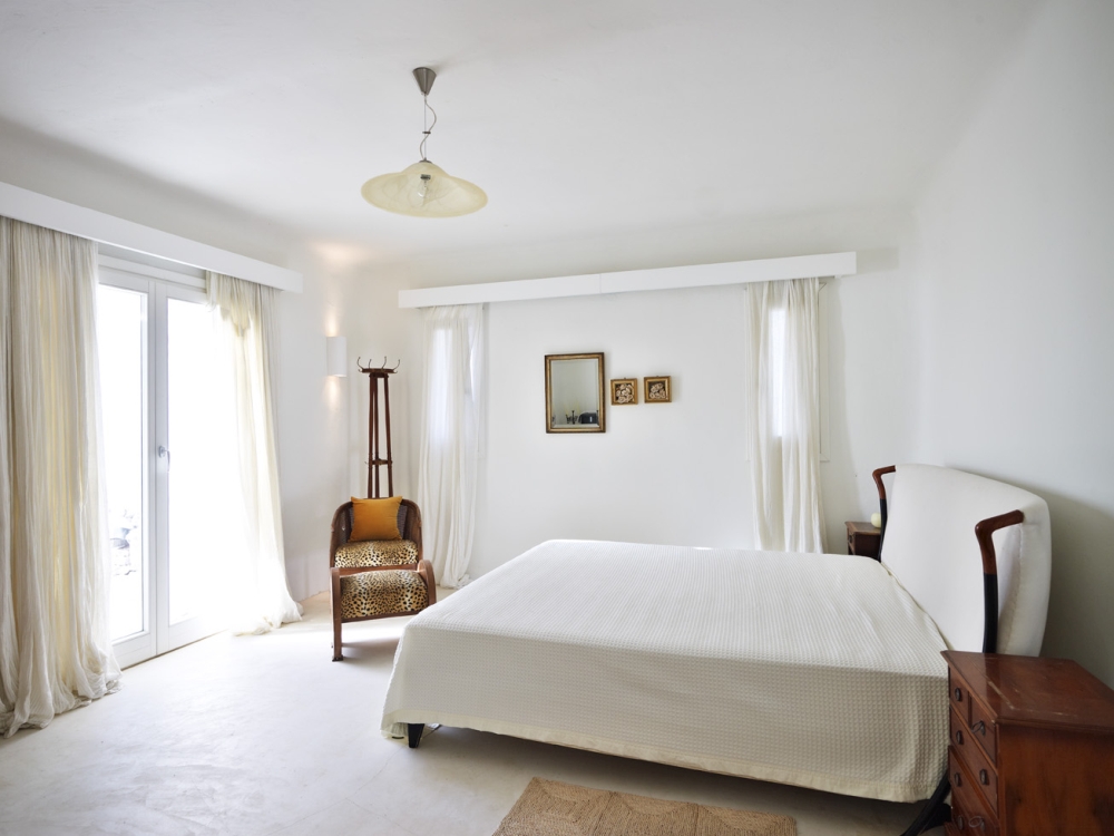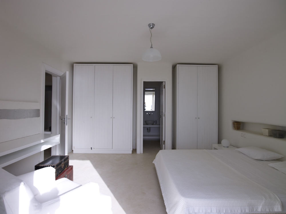 Welcome to this white-wonderland of stunning furnishings and simplicity. The incredibly minimalistic space is flushed with white walls, cabinets, flooring and lights and consequently fits in perfect harmony with the breezy, casual Mykonos Island style. It is elegantly designed with impeccable taste from the owner and its superb position allows guests to be engulfed by its soaring views of the Aegean Sea and the white-washed cubic panorama of Mykonos.