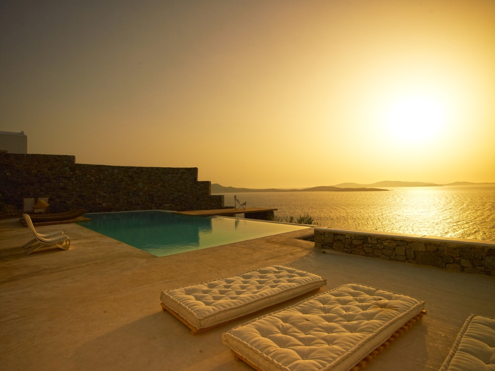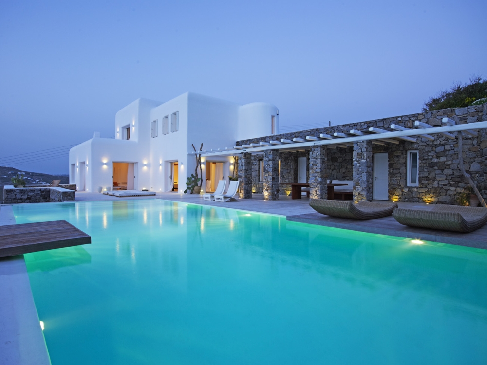 SERVICES & AMENITIES Air conditioning: All bedrooms LCD TV Satellite/CD/DVD/Audio: Yes Wi-Fi Internet: Yes In house laundry: Yes Linen twice a week: Yes Daily maid service: Yes MGV concierge & travel assistance DISTANCES Towns: Chora (Mykonos town) 10 min Convenient shops: Ornos 5 min Ports: New 20 min - Old 15 min Airport: 15 min Beaches: Ornos 5 min – Korfos 5 min - Psarou 10 min – Agios Ioannis 5 min |