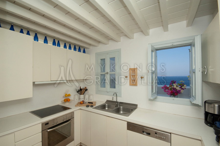 A small pool in the lower garden is perfect for a refreshing morning dive or a dip following a late afternoon siesta, while a couple of sandy beaches, small yet peaceful make this Mykonos Villa ideal for a group of guests consisted of a family with friends who wish to share a unique vacation experiences in an elegant fashion.