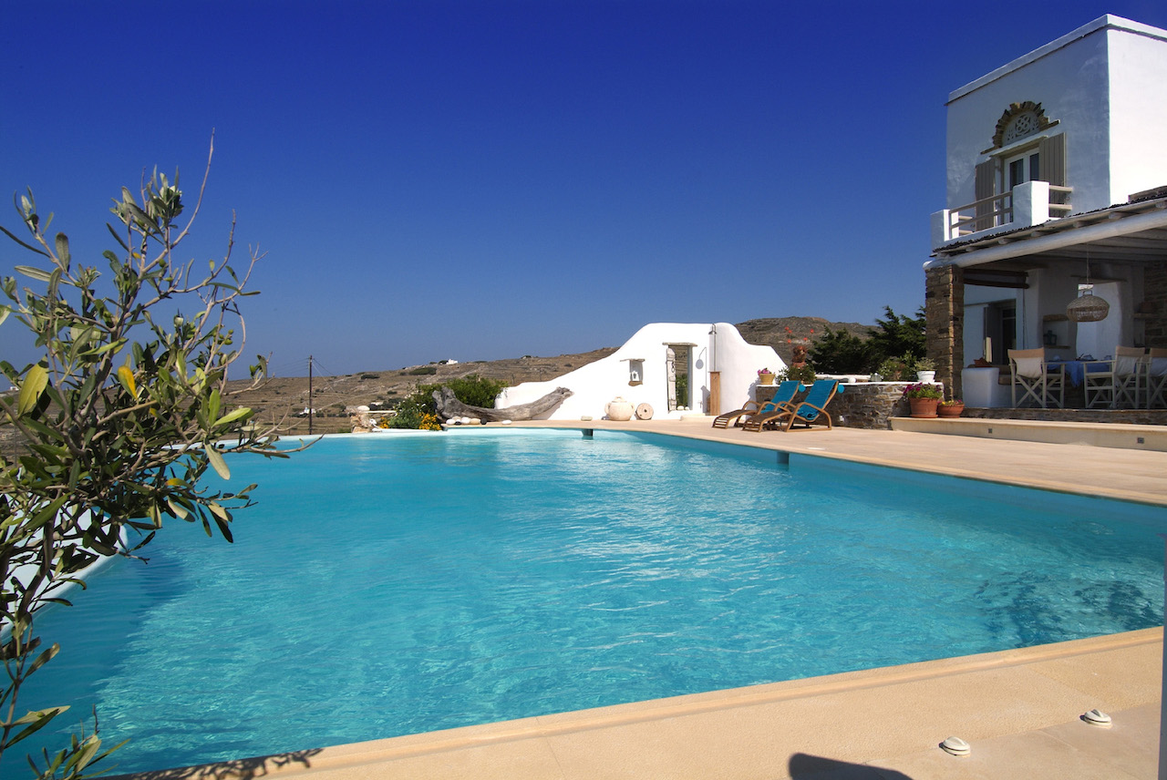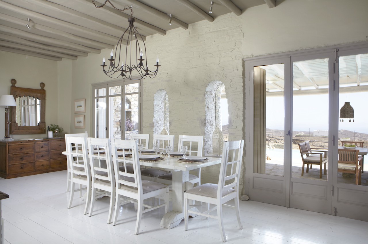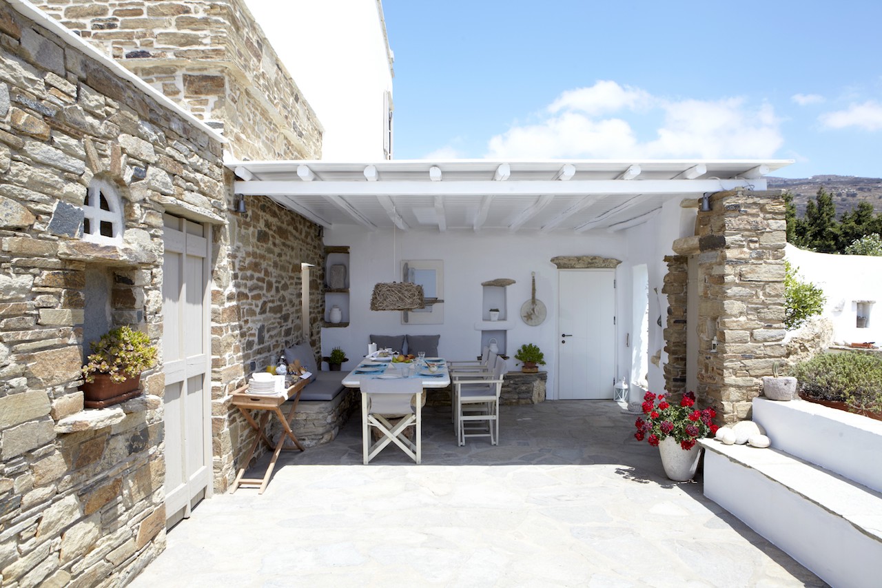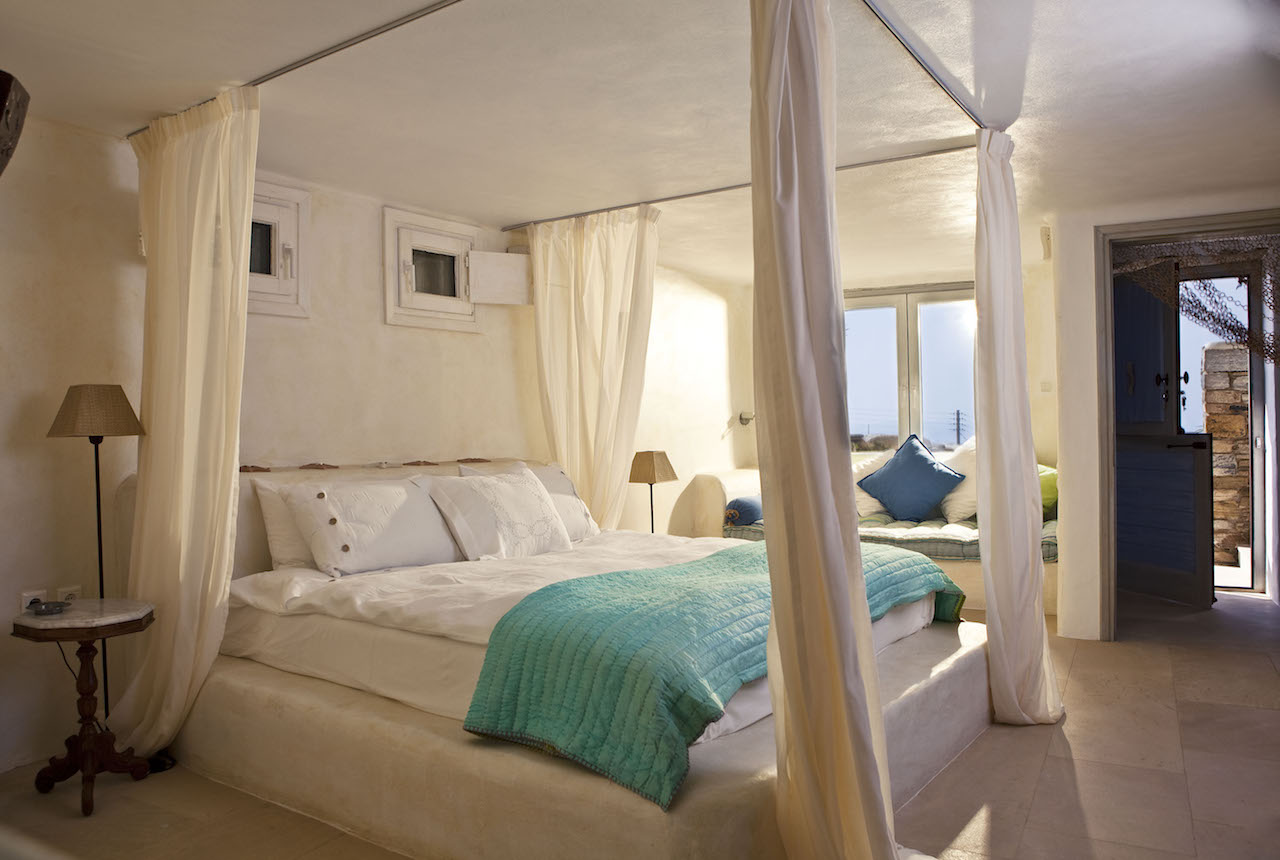 Guests looking for some serious tranquility will find much to appreciate at Villa Aera. Located just on the outskirts of a beautiful, lazy little village called Triandaros yet still 10 minutes from the busy town of Tinos, the villa offers guests a convenient and meritorious experience. Rustic and traditional yet still combining all the modern and up to date appliances and furnishings, this 5 bedroom villa is a catch. Each bedroom and bathroom has its own unique characteristics and all are darling in their own way. The master bedroom is en suite and has direct access to a gorgeous terrace which is ideal for your morning coffee or a few sun salutations before sunrise!